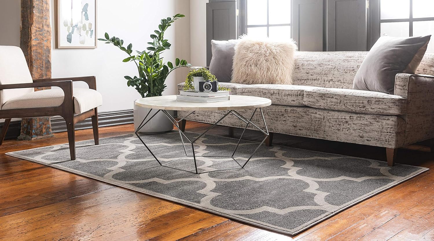Unique Loom Trellis Collection Moroccan Lattice Gray Area
